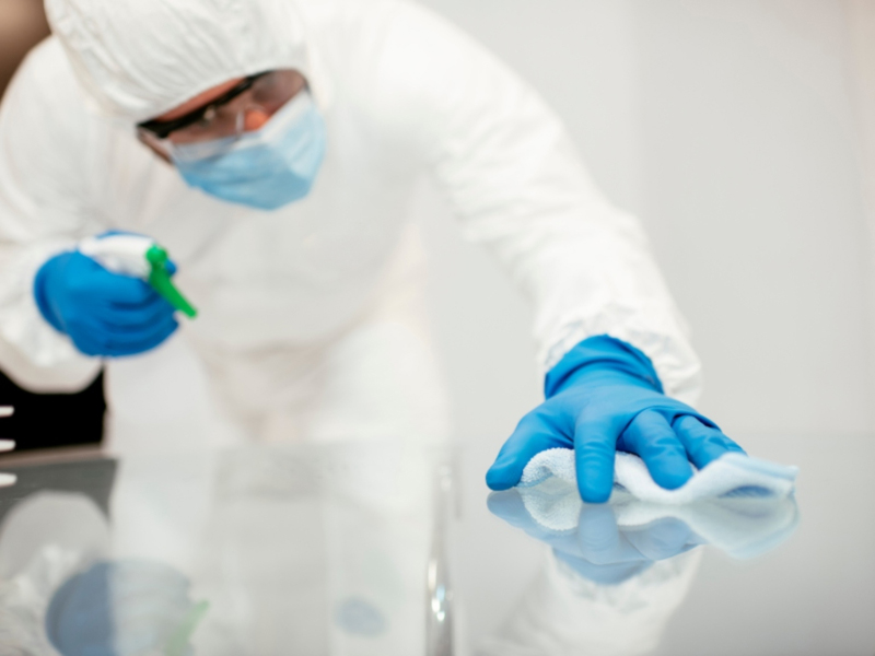 - 바닥, 벽면, 천장: 세균, 바이러스, 곰팡이 등 미생물 제거